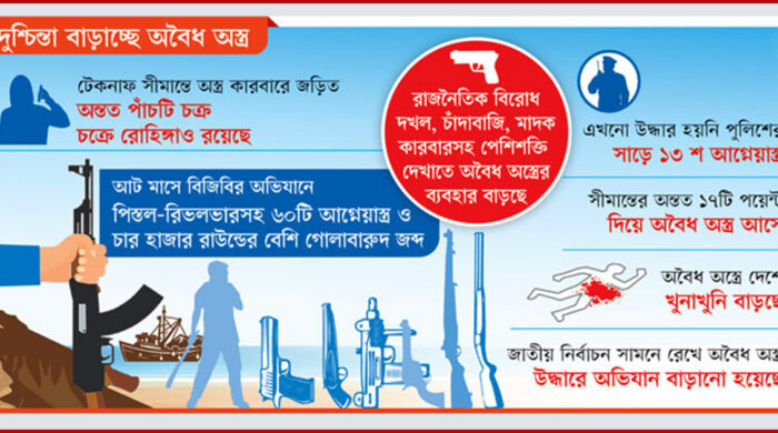 বাংলাদেশ-মিয়ানমার সীমান্তের ২৭১ কিলোমিটারজুড়ে সাতটি পথে সক্রিয় রয়েছে অস্ত্র পাচারকারীরা—এমন তথ্য উঠে এসেছে সর্বশেষ এক গোয়েন্দা প্রতিবেদনে। প্রতিবেদনে বলা হয়েছে, এই রুটগুলো দিয়েই নিয়মিতভাবে রোহিঙ্গা ক্যাম্প ও পার্বত্য অঞ্চলের সন্ত্রাসীদের কাছে অস্ত্র সরবরাহ করা হচ্ছে। শনাক্ত সাতটি পাচারপথ চিহ্নিত পয়েন্টগুলো